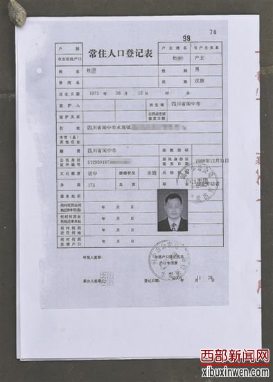 张先生提供了一份从阆中市档案馆复印的材料,男子杜某与一女子在2004年底申请了结婚登记,并提交了一份常住人口登记表,其中身份证号、文化程度等均与张先生户口簿内容一致。“除了名字和照片不是我,其他信息都是我的。”张先生说。成都商报记者看到,该登记表出具于2004年11月28日,盖有水观派出所的公章及承办人印章。