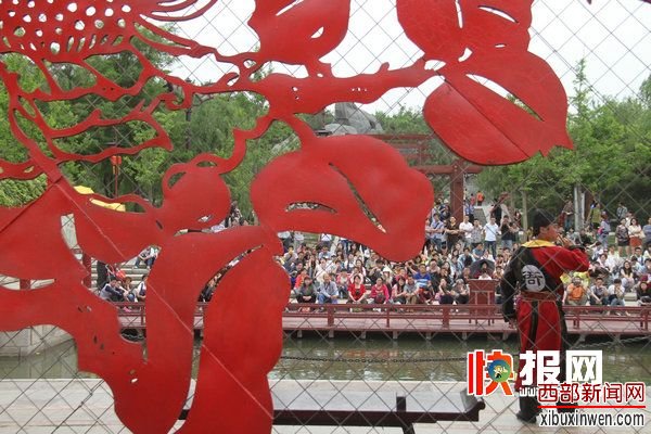 “五一”小长假三天,西安大唐芙蓉园除了例行在御苑门举行盛世迎宾礼及紫云楼北广场的文艺汇演外,还举行了“动感极限2013年大唐芙蓉园轮滑竞技大赛”和“相约芙蓉园 爱在春天里”单身男女相亲派对。此外,大型梦幻诗乐舞剧《梦回大唐》、全球最大的水幕电影《齐天大圣》、世界非物质文化遗产《东仓鼓乐》,以及民间惊险绝技之刀山火海、武术、杂技、高跷等60多项精彩表演,为广大游客在大唐芙蓉园的旅游增添了更多的情趣。(记者 钟发东)