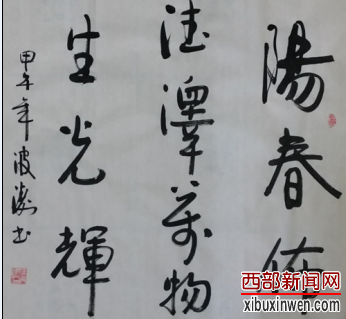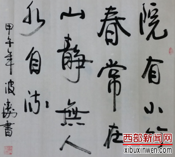 古人云,书法之美,重点在于感受“书法者情绪表达的意象”,这种意象的感受,就是一种艺术情愫的强烈缘起。 “学书在法而其妙在人,法可以人人而传,而妙必其胸中之所读得。”“书画之妙,当以神会,难以形器求也”。其作品在意象方面美的巧妙,经常能引起别人的艺术共鸣。任波涛书法集各家之所长,厚重、严谨,飘逸、清健,他对书法线条的理解顿悟,赋予了线条全新的魅力,使他的书法展示给大家有着独特的线条之美,其字用笔美、点划美、意境美。他作品通篇结构,引领管带,首尾相应,一气呵成。波涛的书法作品的艺术之美宛若无言而有诗篇之意蕴,无动而有舞蹈之神形,无色而有绘画的斑斓,无声而有音乐的旋律。(特约撰稿人 张秦 总监 马文峰 记者 罗平)
