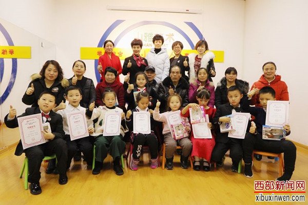 孩子们的家长、山雅子月艺术培训中心校长陈雅丽、知名歌手徐蕾等、全国青少儿播音主持陕西负责人、强化班的班主任白雪玲一同观看了汇报演出,并为孩子们颁发了证书和奖品。