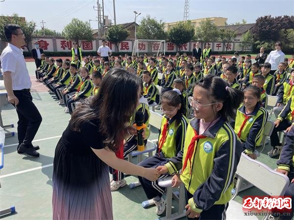 本次活动由陕西阳光报社发起倡议,联合宝鸡燕德宝汽车有限公司、宝鸡市爱心演绎联合会、宝鸡市英飞电子有限公司及宝鸡巴黎风谛食品有限公司为南寨镇中心小学捐赠教学物资。当天,与会领导和嘉宾为少先队员代表发放了爱心文具,为孩子们送上学习用品及节日的关爱和祝福,并鼓励他们努力学习、健康成长,心怀家国,争做新时代的好少年。据了解,此次活动为南寨镇中心小学捐赠图书、桌椅、文具、节日蛋糕等物资,总价值4万余元。