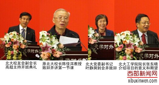 出席本次启动仪式的主要嘉宾有:北京大学原校长、院士陈佳洱先生,北京大学党委副书记叶静漪女士,北京大学工学院校长张东晓先生等北大相关领导、相关捐助企业,以及来自河北、陕西、湖南等省受捐的教师及学生。在启动仪式上,北京大学相关领导,中国村镇银行联盟主席齐大清先生先后做了慷慨致词,昱丰实业CEO焦宏代表昱丰公司发言讲话。
