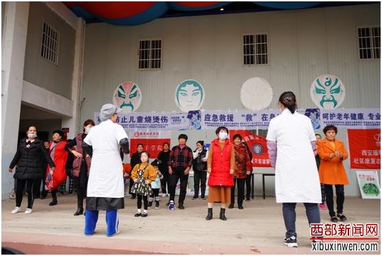 西安雁塔邓景元社区志愿服务队一开始就针对妇女群众比较多,易于普及老年健身康复活动,并提出:“健康是自己的,如果没有了健康那么一切都是空白的。”他们有序的组织并教大家一起跳“经脉拍手操”,全体儿童家长也都跟着节奏同邓景元社区志愿服务队一起跳起操来,不一会儿大家便感受到浑身发热,体会到了经脉打通的舒畅快乐。只有乡村的健康,才有乡村振兴的文明新风,只有普及健康科学的方法,才能人人享有健康。