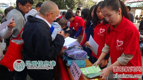 西部新闻网讯 14日上午,共青团昆明市委、春城志愿者服务总站、共青团西山团委共同联合开展了一场向外来务工人员免费发放健康爱心包的“爱心暖职场 红丝带送健康”活动。活动旨在进一步推进外来务工群体健康安全意识的提升,搭建公益互助和身心健康关爱平台,提高外来务工人员预防艾滋病的意识。