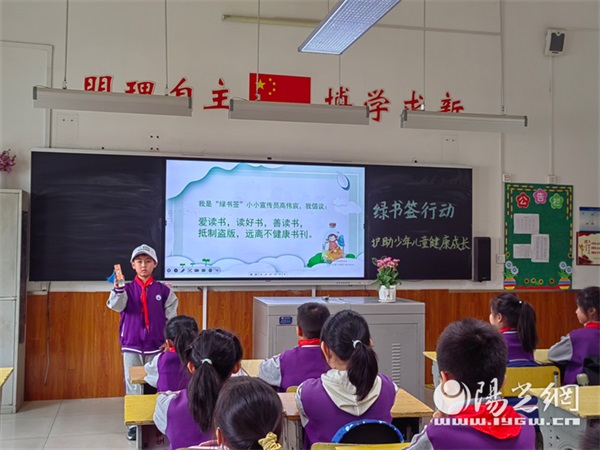 精心搭建“护苗行动”宣讲平台。精心培养100名“绿书签·护苗行动”小小宣传员深入全区中小学生开展主题宣讲,首批小小宣传员由6所小学共计100名学生组成,宣传员以“护助少年儿童健康成长,拒绝有害出版物及信息”为主题,深入校园为老师同学们讲解如何正确阅读,如何识别有害读物,鼓励未成年人购买正版书籍,远离和抵制有害信息等内容,并通过张贴海报、发放绿书签、手抄报创作、视频互动等方式积极引导未成年人进一步提高绿色阅读、健康阅读的意识。精心制作并向100名小小宣传员发放“爱心护苗公益大礼包”,内含帽子、胸章、护苗成长手册、钥匙链等宣传品,让孩子们快乐阅读、健康成长。