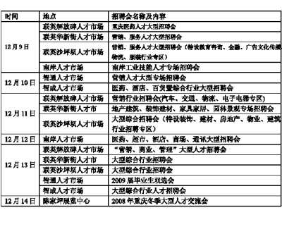 中国西部新闻:尽管遭受金融危机冲击,却有不少企业趁机低价“淘人”!昨天,来自联英、智通、智成人才机构的消息称,本周,主城渝中、江北、沙坪坝、南岸等人才市场将连续举办16场招聘会,2600多家企业提供就业岗位超7万个,其中最大型的“2008年重庆冬季大型人才交流会”本周日在陈家坪展览中心举办。数据显示,本周有三成企业在过冬期招聘大量“储备人才”。