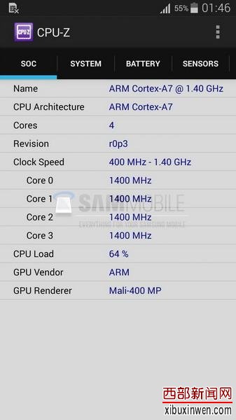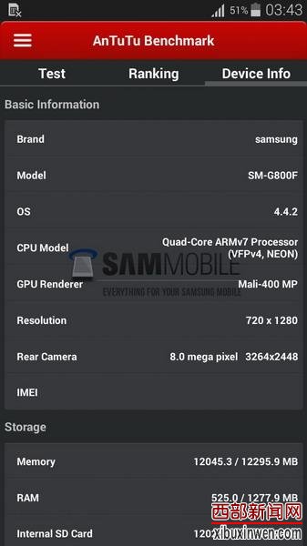此次国外网站SamMobile泄露的三星GALAXY S5 Mini的系统截图主要为我们确认了该机在硬件方面的一些配置,比如触控屏分辨率确实为720p规格,搭载主频为1.4GHz的Exynos 3470四核处理器,并集成Mali-400 MP4 GPU,拥有800万像素主摄像头,并且210万像素前置镜头还支持1080p分辨率视频录制等等。