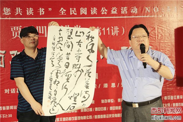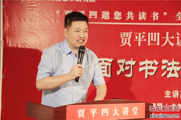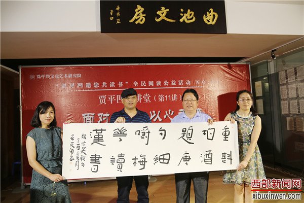 西部新闻网讯 (文/李浩 记者 叶子 资料提供 贾平凹文化艺术研究院 摄影 田建国)2017年6月18日,由贾平凹文化艺术研究院策划,由中国散文学会、陕西省新闻出版广电局、陕西省作家协会、贾平凹文化艺术研究院联合主办,由贾平凹读书社、西安大唐芙蓉园、西安曲江贾平凹馆共同承办的“贾平凹邀您共读书”全民阅读公益活动的第51场,也是贾平凹大讲堂第十一讲——著名书法家、陕西省书法家协会副主席麻天阔先生主讲《面对书法以心为镜——关于书法艺术鉴赏漫谈》在西安曲江贾平凹馆开讲。陕西日报、西安日报、西安晚报、三秦都市报、西部新闻网、西安文化网等多家媒体和西北武术院、陕西法智律师事务所、西安荞麦园美术博物馆、陕西永丰酒店餐饮管理有限公司、陕西秦鼎运茯茶有限公司、陕西金兆餐饮有限公司、西安户县龙窝酒厂、淳化御泉疗养院矿泉水厂、碑林武术协会等也支持了本次活动。西部新闻网全程报道本次盛况!