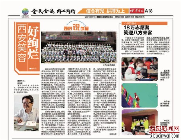 编者按:著名文化学者肖云儒老师为十四运志愿者创作题为《西安笑容好绚烂》一文刊登于华商报。
