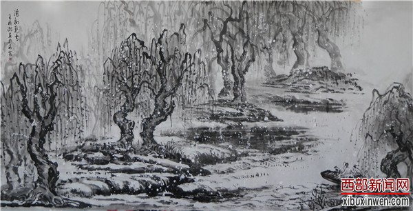 书画作品《灞柳飞雪》