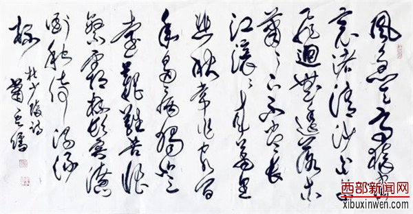 以此故,中国书法素来被称为线条的艺术。那真是点如朝露,钩如顽石,竖如修竹,横如水波,撇捺若双浆击浪,推拉扭折和提按更似老藤飞扬,既是笔墨的线条,又都无一不是情感的枝条啊。或酣畅,或飘逸,或枯涩苍劲,或典雅古拙,又无一不是人生际遇的再现和人格的外化啊。而以纯形式感的线条来表达书写者的生命情怀和艺术意趣,更上升为中国文化写意精神和中国文人写意情趣的极致。书法对线条的探索,给国画提供了持久而丰沃的艺术营养。