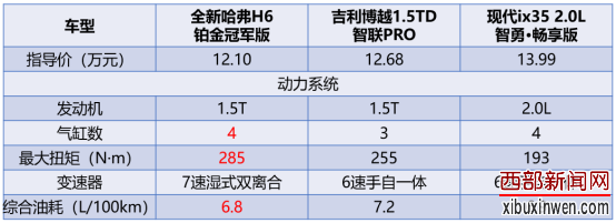 我们选择全新哈弗H6铂金版、吉利博越PRO、现代ix35进行对比,三款车价格接近,也分别是自主和合资SUV的代表车型之一,进行比较不仅具有参考价值,也很有说服力。