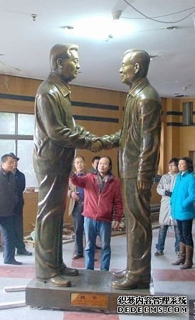 西部新闻网消息:历时120天,由甘肃天水市麦积山美术馆雕塑家张北平制作的胡锦涛主席与温家宝总理去年“5-12”地震时在汶川机场“握手”的雕塑日前落成。这座大型玻璃钢雕塑美术作品,高2.98米、宽1.68米,重1吨多,将捐赠给汶川地震博物馆。 (责任编辑:海浪)