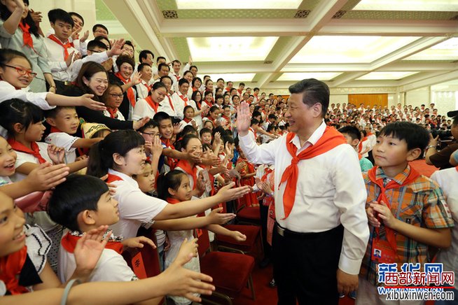 2015年6月1日,习近平在北京人民大会堂亲切会见中国少年先锋队第七次全国代表大会全体代表。