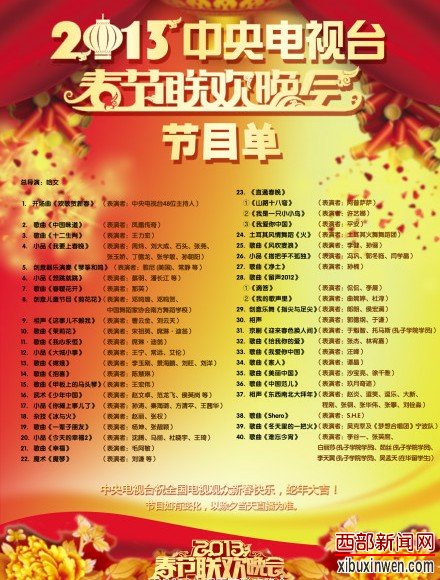 春晚官方微博发权威节目单 傅琰东可能是彩蛋