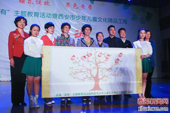 在热烈隆重的气氛中,西安市妇联主席李军宣布西安市2016年“双有”主题教育活动暨少年儿童文化精品工程正式启动,市妇联、省妇联、市委宣传部、市财政局领导和嘉宾一起为果色奇香艺术之树挂上石榴果,寓意2016年“双有”主题教育活动暨西安市少年儿童文化精品工程在累累硕果中盛大启幕。
