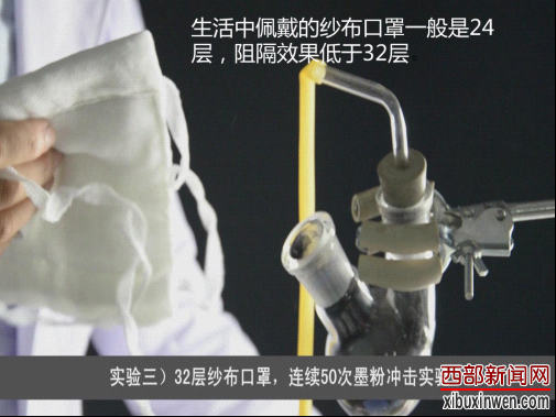 二、活性炭口罩、32层纱布口罩:50次墨粉冲击,悉数穿透,过滤性甚微!