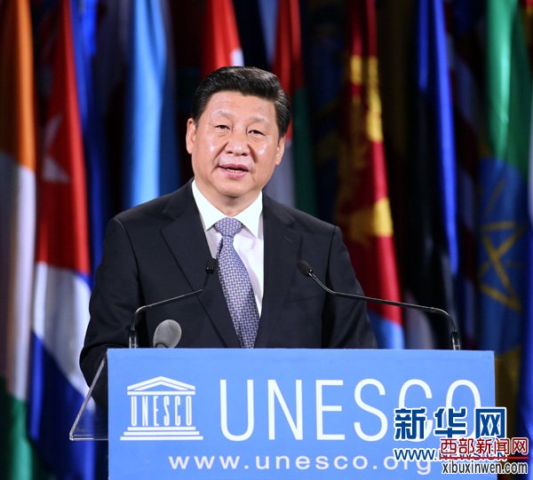 2014年3月27日,国家主席习近平在巴黎联合国教科文组织总部发表重要演讲。 新华社记者 姚大伟 摄