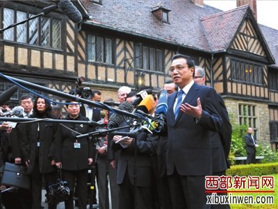昨天,李克强在德国勃兰登堡州参观波茨坦会议旧址,并在参观后发表讲话。新华社发