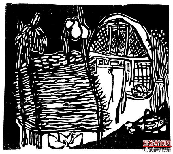 在搞毕业创作时,由于受延安时期黑白木刻的影响,我选择了木刻创作,从此一发而不可收拾。版画《家》被作为优秀作品而留校,该作品入选陕西省庆祝建党70周年美术作品展并荣获延安市美展三等奖,速写作品《山村小景》被陕西省教委选送参加中日青少年书画作品交流展在日本京都展出,版画《迎新春》入选第八届全国美术作品展,套色木刻《黄河岸边枣儿香》入编《时代印迹—中国版画一百年》等,这更加坚定了我从事木刻道路的信心和决心。在我的版画作品中,大部分素材都是来源于农村生活中的速写,作品大至八、九米,小到巴掌大小,有山川河流,花草树木,锅碗瓢盆,男女老少等都是我所表现的对象。
