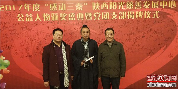 西部新闻网讯 (记者 张栢溪)2018年1月18日,由陕西省民政厅、共青团陕西省委、陕西省文明办指导,陕西阳光慈善发展中心牵头主办的2017“感动三秦人物”颁奖盛典,在西安金花大酒店成功举办。陕西阳光慈善发展中心理事长马强致辞,陕西阳光慈善发展中心秘书长杨富生做了陕西阳光慈善发展中心2017的工作报告。本次活动受到铜川市华原新绿实业有限公司泰晤士公馆大力支持!西部新闻网全程报道本次盛况!