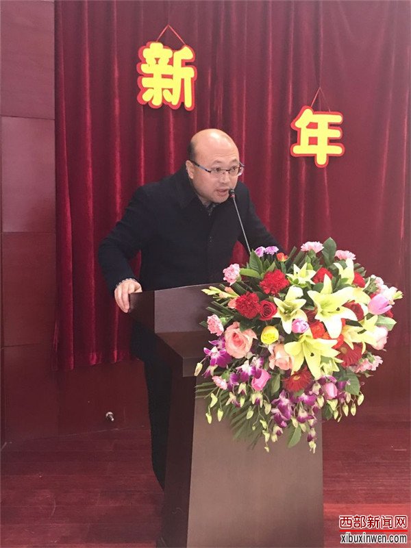 西北大学中国西部发展研究中心理事长桂维民给大家拜早年,祝贺丝路文化大使肖云儒老师主编的《丝路中国段文化样态研究丛书》隆重首发,明确了2018年中心工作的目标任务,祝愿大家在新的一年里做到"六好":好身体、好家庭、好情怀、好智慧、好平台、好诗篇。