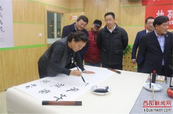 开幕式后,李艳秋老师与当地的书画家们进行现场互动,并为书法爱好者和收藏界人士现场书写作品。