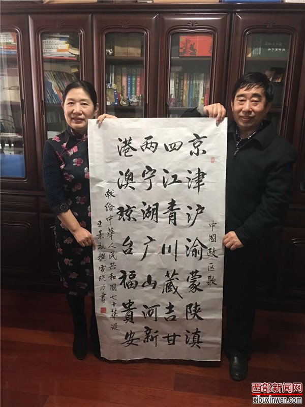 王老先生还说,2019年是建国70周年,他特意请表弟用书法书写了新版《中国政区歌》,想用这首歌向祖国七十华诞献礼。他还希望,如果有作曲家对这首歌感兴趣,欢迎为它谱曲以便传唱推广,更希望年轻的抖音歌手利用新媒体传唱这首歌。联系电话02986253335,13991888520。(张伟 张栢溪)