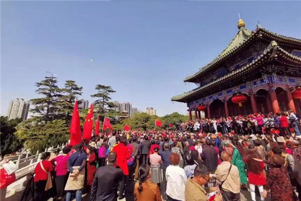 人们纷纷在公园里沐浴春风、载歌载舞。突然间,一位小女孩在兴庆湖边,用铜铃般的嗓音大声朗诵起古诗《咏柳》,吸引了游人的驻足。与此同时,随着一首大家耳熟能详的乐曲《我们举杯》曲调缓慢响起,公园里的人群逐渐自发汇聚到了沉香亭附近,著名歌唱家任勇、李雅充满磁性的嗓音立刻吸引了大家的目光。在高昂的《红旗颂》声中,由陕西广播电视台主持人团队赵冬安、刘芳、海涛、张馨月、吴军朗诵的《我骄傲我是中国人》,将现场的气氛瞬间点燃,大家自发的和主持人一起呐喊欢呼,掀起了全场的爱国热情,无论是年逾古稀西迁教授、潮气蓬勃的年轻学生、传承经典的戏曲名家、还是自发前来的广大文艺爱好者都深深的被一句“我是中国人”而感动。最后,在由李亚东、刘梅、刘晓洁领唱的一曲《为祖国干杯》的欢快旋律中,现场群众纷纷加入了唱歌、跳舞的行列中来,用自己的方式表达着对祖国的感谢,对幸福生活的感恩,对美好明天的向往。