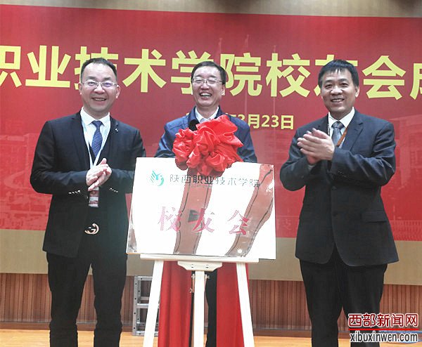 西部新闻网讯 (文/成媛媛  黄诗煊 )2018年3月23日,陕西职业技术学院校友会成立大会,在西安白鹿原校区3021报告厅举行。陕西职业技术学院党委书记何树茂,陕西职业技术学院党委副书记、院长刘胜辉,陕西职业技术学院校友会首届会长金新康,共同为校友会揭牌。