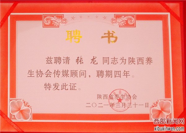 陕西省养生协会会长李靖为西部新闻网总编辑张龙等颁发传媒顾问聘书