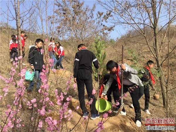 春天的万花山“中国画家林”草木吐绿,桃花芳菲,这是“中国画家林”主题植树活动开展二年来的初步成果。旧友新朋,迎来了又一年植树造林。中国国家画院党委副书记、纪检书记张兵,办公室主任乔宜男,艺术信息中心主任、《中国美术报》执行总编辑王平;中央数字电视国学频道总监李静;西安中国画院院长王犇与画家吴金星;陕西国画院院长助理乔建业与画家郑伟斌、张立、韩勃正,《延安日报》社社长石兴平,延安文联副主席、延安美术家协会主席李师明,延安美术家协会副主席贺成安、于新华、惠菲,秘书长赵晓旭,副秘书长张小华,理事李永刚;延安书画艺术教育中心少儿部主任杨小洋,延安万花山乡佛道坪村第一书记樊雄、延安市宝塔区教体局继教中心办公室主任梁丰,延安新新双语小学校长南志中、副校长姬延安,陕西顺伟实业总经理董伟和中国国家画院“小手牵大手”资助的百余名留守儿童孩子们一起挖坑植树、浇水培土,在春天的万花山又种下一片新的绿色。