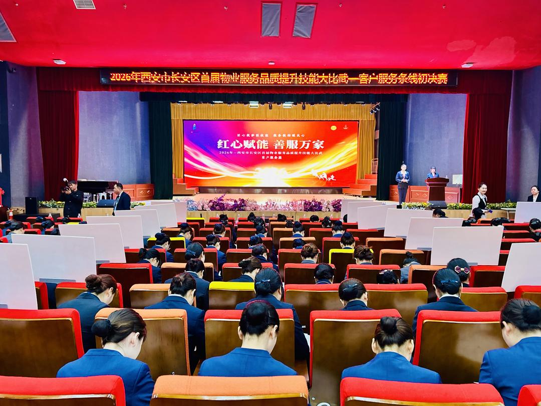 春风送暖,匠心筑家。2026年4月12日,由西安市长安区住建局、长安区总工会联袂主办,长安区物业管理行业协会匠心承办的“2026年西安市长安区首届物业服务品质提升技能大比武”客户服务及秩序维护条线初决赛,于长安区第一中学实验初级中学温情落幕。本次活动以“红心赋能 善服万家”为核心理念,以技能淬炼初心,以服务温暖民心,在深耕物业服务品质的同时,大力传承弘扬劳模精神与工匠精神。