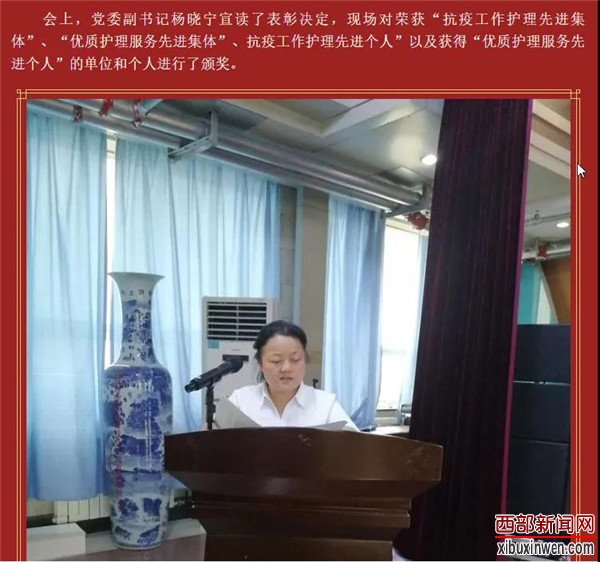会上,党委副书记杨晓宁宣读了表彰决定,现场对荣获“抗疫工作护理先进集体”、“优质护理服务先进集体”、抗疫工作护理先进个人”以及获得“优质护理服务先进个人”的单位和个人进行了颁奖。