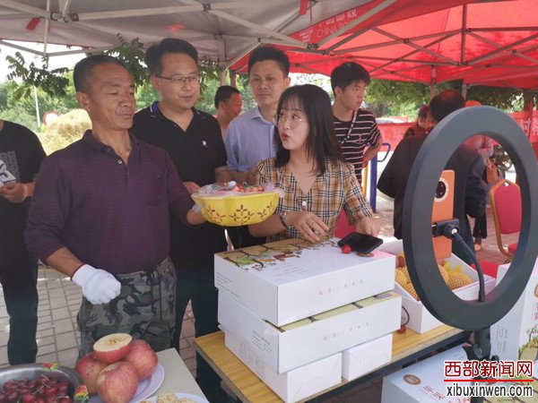 不远处,有几位美女主播正在通过网络直播的方式向全国各地的网友们推介曹师村的樱桃。就连参加采摘节的三原县陵前镇镇长滑向军也临时客串了一回主播,给曹师村的樱桃代言。“我们曹师村的樱桃味甜、色好、个大,欢迎广大网友下单!”一大帮粉丝们看到帅气的镇长来到了直播间,很快就被抢购一空。看来,镇长直播带货还很专业呢!