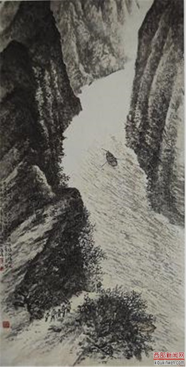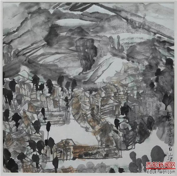 厚重、扎实、大气,坚实的生活根基使他的山水画有别于千篇一律的“学院派”。他的画中仿似可以嗅出民间生活烟火气味,感知世道与人心。这注定了他画作的生命活力,也呈现出独禀的个性气质。作为画家,他已走出了历史与个人的局限,使绘画进入超时空的精神指向,呈现出生命昂扬的一种过程和气象。不论是画陕南还是陕北,他的画里始终蕴含一种向死而生的精神指向,饱含着充沛的生活气韵和活力,不矫饰,袒露而率直地穿透世态表象,直逼人心。那不仅仅是悲天悯人的济世情怀,那更是一种强大的精神存在,是超凡脱俗的人间大爱以及对自然与生命本身的敬畏。