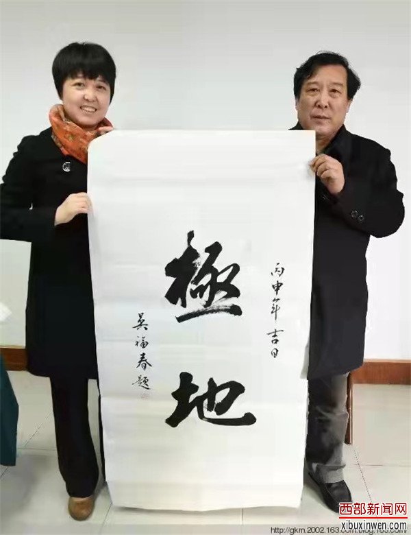 吴福春副主席撰写作品《极地》。吴福春副主席是陕西省书画圈中的公众人物,更是公益人士,经常参加社会公益活动,将大爱和无私奉献给社会。很快,书法作品《极地》被魏鹏所在边防某部队刻于七米高巨石上,永久矗立在我国西部边陲,陪伴官兵守卫祖国“西大门”。