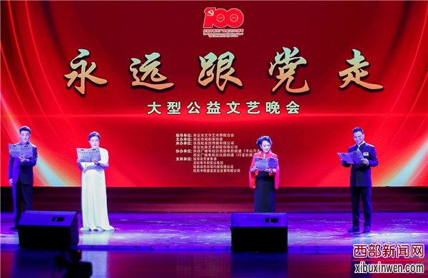 初心如磐、使命在肩,文艺先行,建党百年,7月1日晚,在西安人民剧院隆重上演《永远跟党走》大型公益文艺晚会,该晚会是由西安市文学艺术界联合会指导,西安市戏剧家协会主办,陕西陆家班传媒有限公司、西安丝路艺术剧院承办,陕西广播电视台西部电影频道《千山万水》栏目、西安广播电视台丝路频道《行走丝路》栏目协办。西部新闻网联合多家媒体重磅聚焦本次活动。