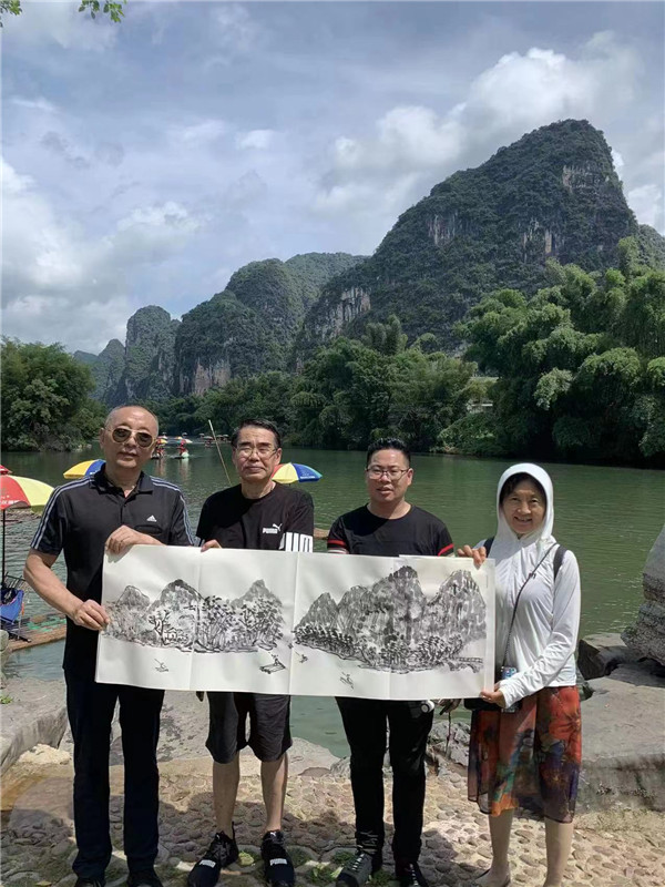 凤凰于飞,和鸣阳朔。如意索道,陕旅争峰。7月中旬,著名文化传播学者、国家二级教授、著名画家、中国企业文化促进会中小企业委员会副会长、陕西广电书画艺术研究院院长李荣;青年文化学者、书法家、中国品牌推广第一人、西部新闻网总编辑张龙;著名书法家、国家一级美术师、陕西广电书画艺术研究院文化艺术顾问李克利应企业之邀赴桂林阳朔考察文旅企业,就文化赋能企业品牌建设,助力乡村振兴、增强文化自信,重塑企业文化展开调研,并在漓江上挥毫泼墨,实景写生,寻找中国山水画的创作灵感。