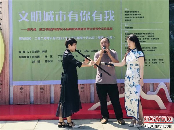 9月6日,由西安市文艺志愿者协会、西咸新区书法家协会、陕西省社区文化建设促进会、雁塔书院主办,沣镐美术馆承办的《文明城市,有你有我——麻天阔、麻正书画家训家风小品展暨西咸新区书协优秀会员作品展》在西咸新区沣东新城诗经里举行。活动现场高朋满座、名家云集,西部新闻网全程聚焦本次书画作品展。