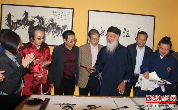 西部新闻网讯(记者 张丽 郑耀成) 9月27日上午,由道教西安青华宫书画院主办的“2014迎国庆弘道祈福书画展”在西安曲江楼观道文化展示区盛大举行,本次活动由国际道教协会会长、西安青华宫住持黄世真担任主持,全国政协常委、中国道教协会会长任法融宣布开幕,并现场泼墨题写“盛世中华”。同时也是道教青华宫和西安曲江楼观道文化展示区联合举办的一次道文化合作活动。