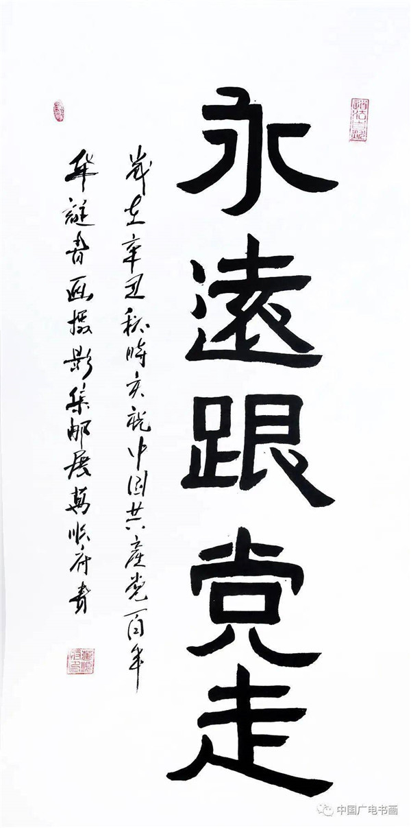 10月19日,全国广播电视和网络视听行业“永远跟党走”书画摄影集邮展(陕西巡展)在陕西亮宝楼艺术博物馆成功开幕。根据疫情防控要求开幕式采取云上开幕模式,京、陕两地通过互联互通举行了开幕式,广电总局相关领导、中国广播电视社会组织联合会展览领导小组相关领导通过网络进行致辞祝贺活动取得圆满成功。青年书法家、中国广播电视社会组织联合会书画摄影委员会(西北)国际艺术创作交流中心副主任、陕西广电书画院传媒顾问兼副院长、西部新闻网总编辑张龙参展两幅书法代表《中国梦》、《精气神》。本次展览时间为10月19日至10月28日。。