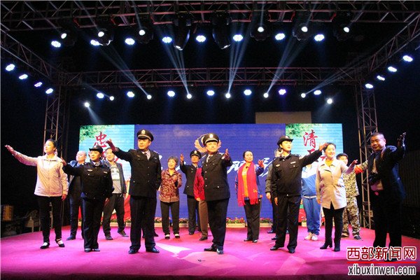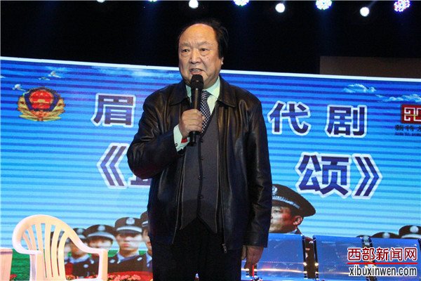 西部新闻网讯 (记者 刘国盛)11月8日晚,蓝田县普化镇楸树庙村广场,灯火通明,观众聚集。用地方戏曲讴歌人民警察、讴歌英雄的眉户现代剧《蓝盾颂》在这里举行惠民首演。台上好戏连连,台下笑声不断,好一派深入贯彻落实党的十九大精神和习近平总书记系列重要讲话精神、歌颂人民歌颂党的动人场面。演出前《蓝盾颂》总编导张晓斌作重要讲话并介绍剧情。