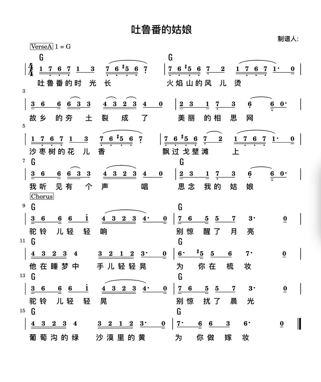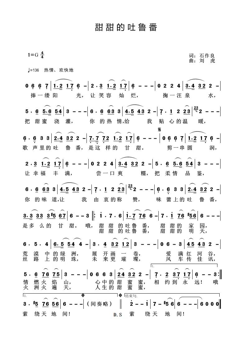 以下为两首歌曲完整歌谱,让我们循着旋律,走进歌声里的吐鲁番: