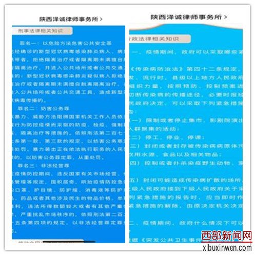 2021年12月26日,由于前几日新闻陆续报道了扰乱疫情防控的相关案例,为了提醒广大市民要遵守疫情防控的相关规定,明白什么该做,什么不该做,什么做了会涉嫌违法、由于疫情在家而产生的劳动关系纠纷等相关问题,陕西泽诚律师事务所曹佩律师在本所公众号上普及了关于疫情防控的法律问题,普及了与疫情防控相关的行政法律相关知识、刑事法律相关知识、劳动合同法律相关知识、民事法律相关知识,阅读量上百。
