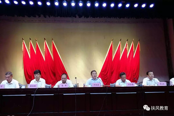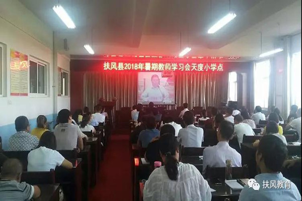 西部新闻网讯(扶风县教体局)8月27日上午,扶风县2018年暑期教师学习教育活动动员大会在扶风会堂召开,扶风小学、扶风初中、职教中心等学校570余名教师在主会场参加会议,其余114所学校2700余名教师在分会场通过视频系统参加会议。