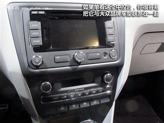 进到斯柯达Rapid的车内,你会发现斯柯达品牌的风格已经淡化了不少,整个中控台貌似很不情愿运用圆形元素,方向盘、有棱有角的出风口和各面板设计得就像大众品牌车型中的复刻版,看来斯柯达被大众收购后,其特有的内饰风格也快被大众品牌家族样式所覆盖了。
