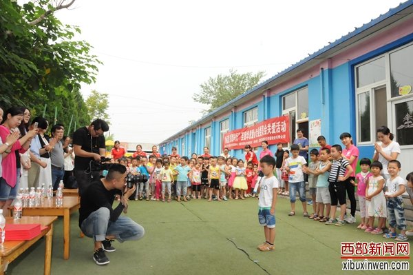 爱心人士和沙利文幼儿园小朋友一起展示作品