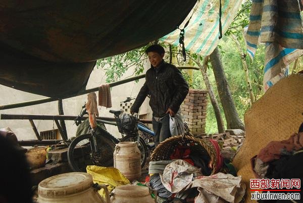 3月22日,记者来到蓬安县何洪的家,他家新建的房子厨房还没弄好,一家人依旧住在对面杂乱不堪的青砖老屋里。