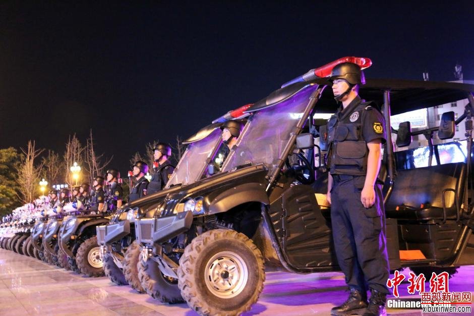 公安干部出动多台车辆参与清剿行动。